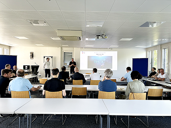 Referent Jonas Hasler gewährte den rund 25 Teilnehmenden einen praxisnahen Einblick in die BIM-Strategie der SSL – von der Planung über den Betrieb bis hin zum Rückbau von Liegenschaften. Denn: rund 65 Prozent der vom Land genutzten Gebäude befinden sich im eigenen Besitz. Umso wichtiger ist eine ganzheitliche Betrachtung über den gesamten Lebenszyklus hinweg.
